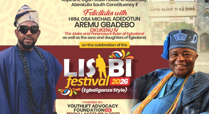 An aspirant for the Ogun State House of Assembly representing Abeokuta South Constituency II, Hon. Olalekan Olatunde Jiboku, popularly known as Jibson has Congratulated the Alake and Paramount Ruler of Egbaland, Oba Michael Adedotun Aremu Gbadebo, on the occasion of the 2026 Lisabi Festival.