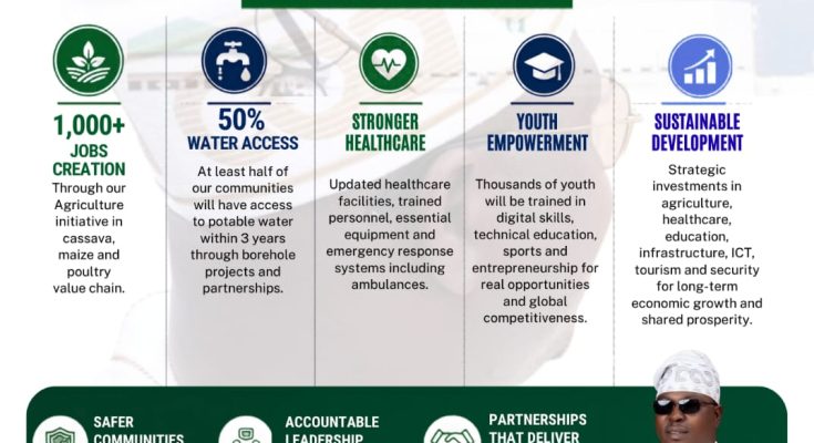 On governance, the plan introduces an accountability model anchored on transparency and citizen participation. Dr. Okanlawon has pledged to hold quarterly town hall meetings to enable constituents to monitor project execution and scrutinize public spending.